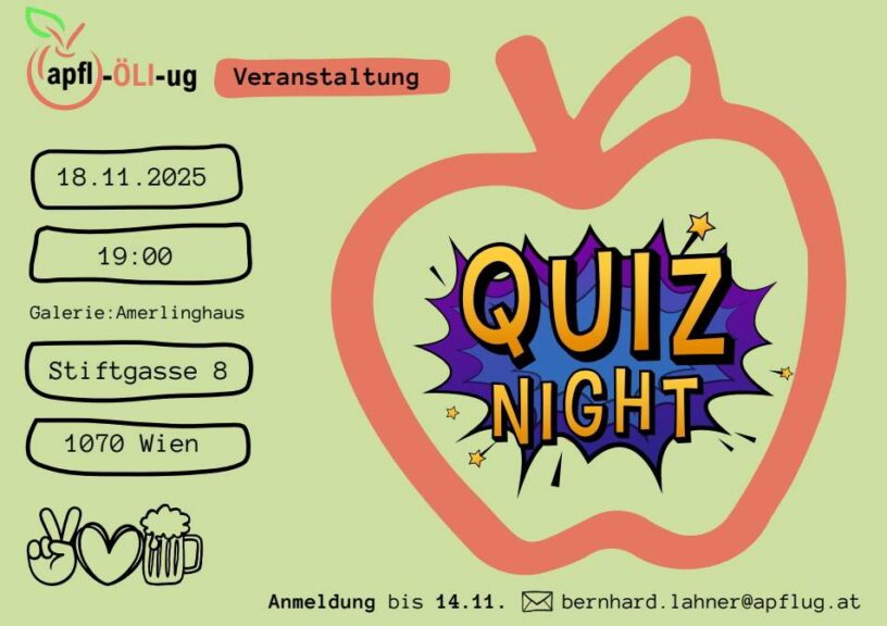 Am Dienstag, den 18.11.2025, um 19h startet unsere nächste Quiznight im Amerlinghaus. Anmeldung bitte bei bernhard.lahner@apflug.at