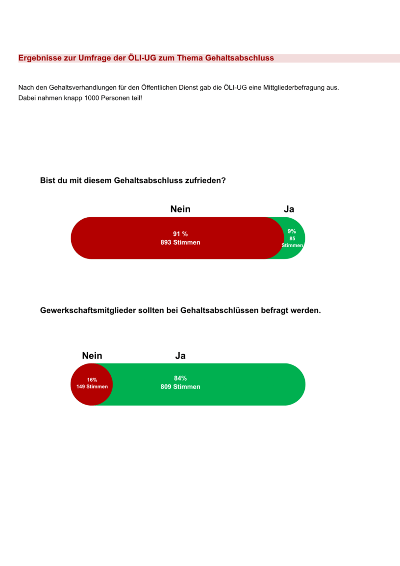 An die 1000 Rückmeldungen haben uns erreicht: 91,3% sind mit dem Ergebnis nicht zufrieden und 84,4% fordern mehr Mitsprache in der Gewerkschaft!