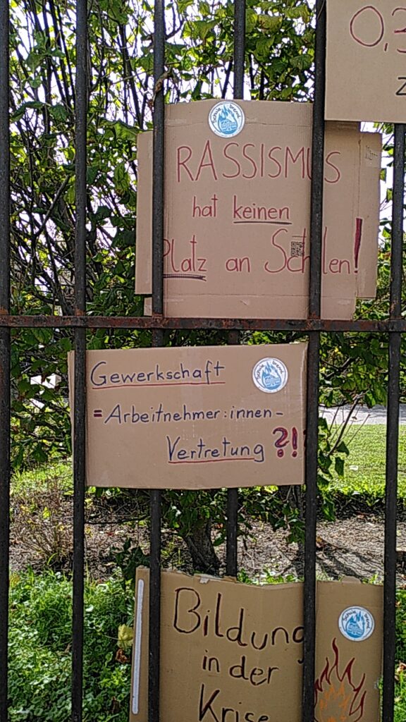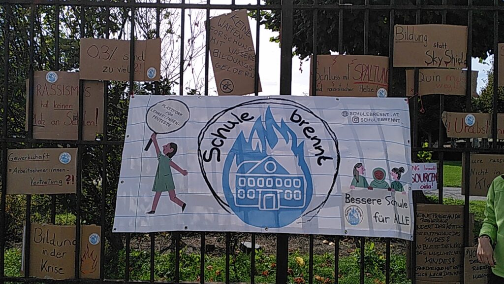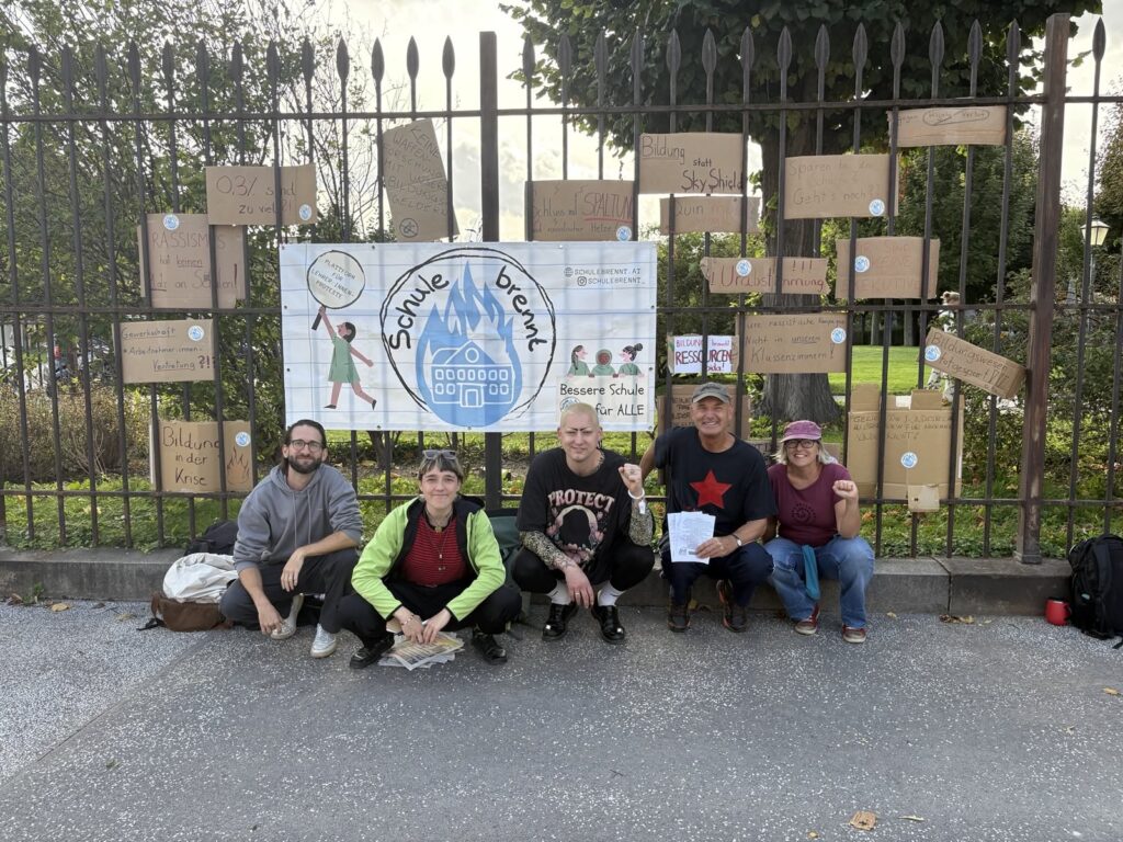Am Dienstag, den 16.9.2025, protestierte „Schule brennt“ mit anderen Aktivist:innen vor dem Bundeskanzleramt während die Gehaltsverhandlungen (Runde 1) gestartet sind.